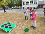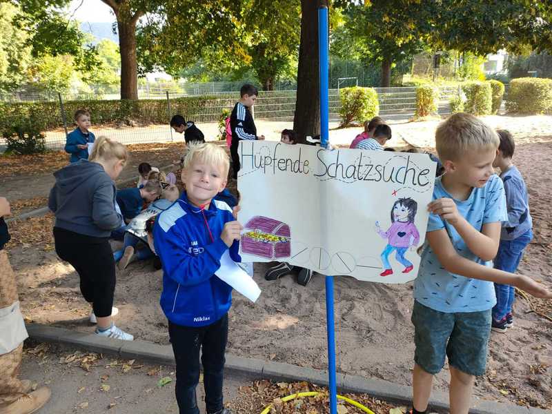 Am Freitag, den 05.09.25 fand das Sport- und Spielefest an unserer Schule statt. Gemeinsam sind wir mit dem Schullied in den Tag gestartet und haben die Stationen für das Fest aufgebaut. Anschließend konnten die Kinder mithilfe ihrer Stationszettel verschiedene Übungen und Spiele auf dem Schulhof ausprobieren - von Sackhüpfen und Kartoffellauf bis hin zu Dosen werfen und Edelsteine im Sand suchen war viel Auswahl dabei! Zwischendurch sorgte das Schulobst für neue Energie. Als krönenden Abschluss erhielt jedes Kind eine Urkunde.