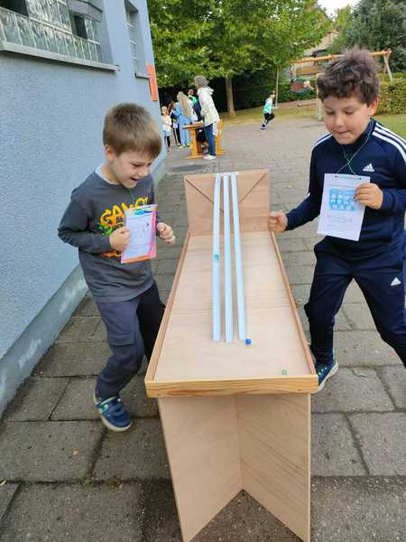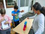 An einem sonnigen Nachmittag im Mai haben die Mitarbeiter/innen der Grundschule Holzhausen auf dem Schulhof Experimente für unsere Schule gebaut. Das Projekt fand im Rahmen der Miniphaenomenta Wolfsburg statt und bringt ein "lebendiges Experimentierfeld in die Schule". Nach dem Motto "Ausprobieren und selbst erfahren wie naturwissenschaftliche Phänomene funktionieren", soll diese nach Anelitung nachgebaute Exponatesammlung für einen Aha-Effekt sorgen und das Lernen mit allen Sinnen ermöglichen. Die Experimente wurden an dem Schulfest am 14.6.24 in der Schule ausgestellt.